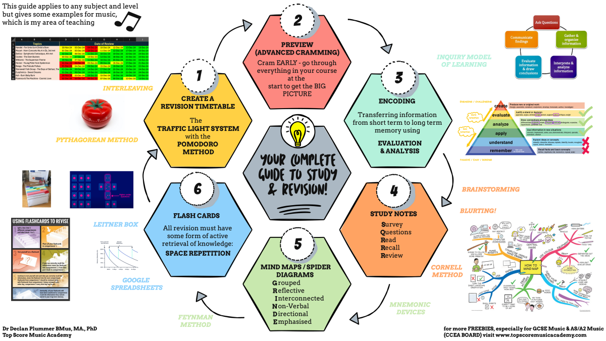 The integrated system: Mind maps → flashcards → recall → review. Each reinforces the other. topscoremusicacademy.com